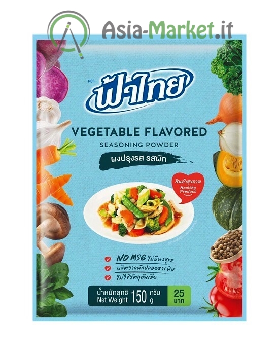 Fra gli ingredienti, la sapidità è garantita dalla salsa di soia in polvere e il sapore di verdure proviene da brodo vegetale liofilizzato contenente sedano, carote, pomodoro e aglio. Inoltre, il contenuto di veri ortaggi in polvere, come cavolo cinese, zucca, spinaci, cipolla e funghi Shiitake, arricchisce la gustosità del condimento.