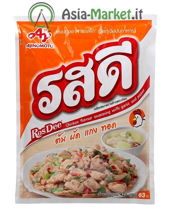 Il dado in polvere per eccellenza della storica Ajinomoto, con estratto di carne di pollo, aglio, pepe, e il caratteristico aroma "umami".