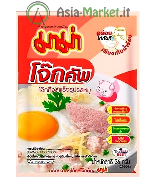 Questa zuppa istantanea riproduce la "Jok" thailandese, una sorta di porridge di riso con pezzetti di carne (di solito pollo o maiale) e spezie.