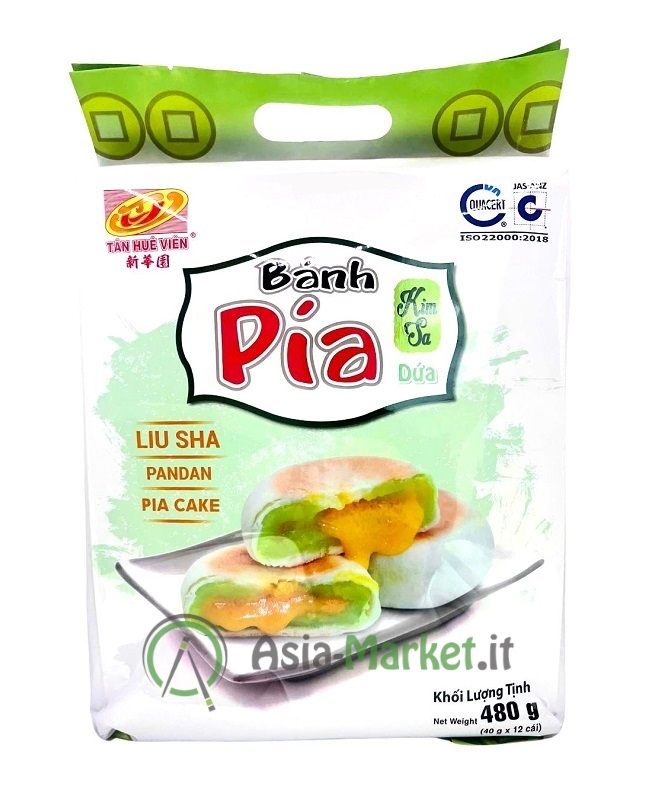 Queste "Liu Sha Pia Cake" (dove "pia" probabilmente ebbe origine dall'inglese "pie", che significa ugualmente torta) sono una versione moderna del dolce vietnamita Bánh Pía della provincia di Sóc Trăng. A differenza del classico ripieno di pasta di fagioli mungo e Durian, la variante "Liu Sha" non contiene il frutto odoroso ma un cuore di crema fondente a base di tuorlo d'uovo salato. Infatti il termine è proprio preso dal cinese ( 流沙 ) in cui si traduce letteralmente in "sabbie mobili" o "flusso di sabbia", riferito al ripieno fluido e "magmatico" (come fosse lava) di crema all'uovo che cola quando la tortina viene riscaldata e poi aperta a metà. Si usa anche la parola "Kim Sa" ( 金沙 ), cioè "sabbia dorata", per evocarne la brillantezza.