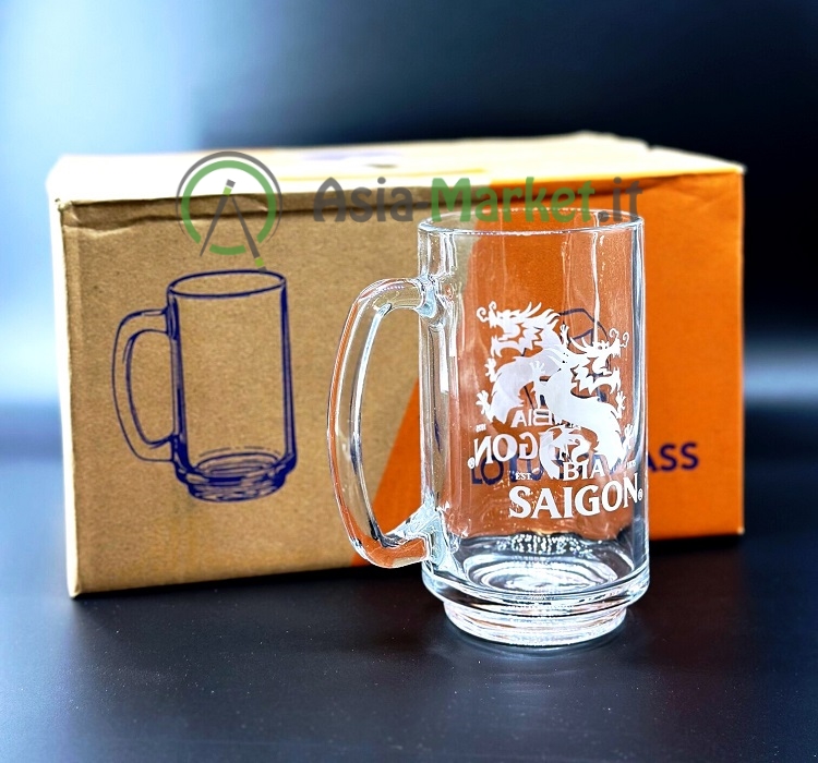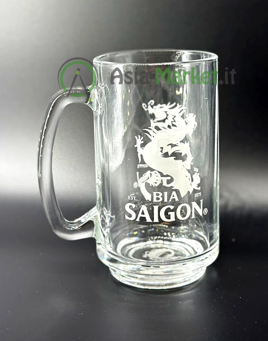 Come dalla foto, ogni bicchiere ha su due fianchi opposti il logo del dragone con la scritta BIA SAIGON Est. 1875 (dove "BIA" significa "birra" in lingua vietnamita e 1875 è l'anno di fondazione). Anche sul fondo è impresso il dragone.
