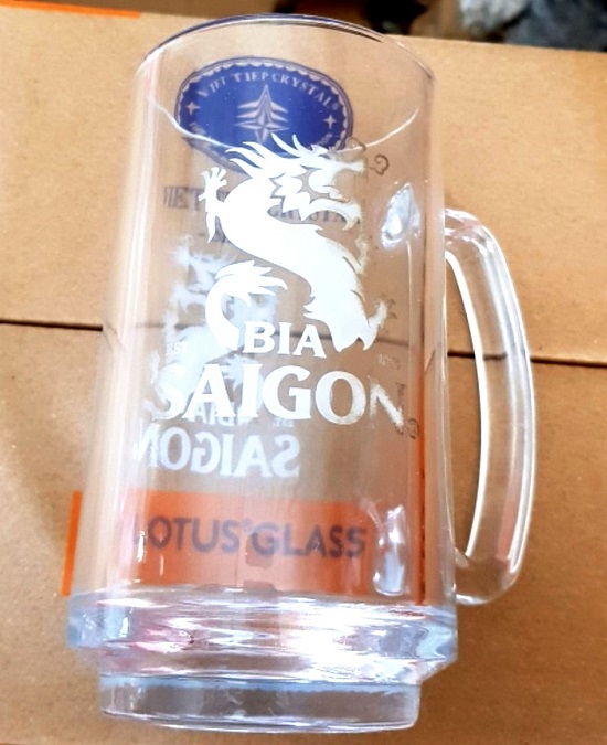 Come dalla foto, ogni bicchiere ha su due fianchi opposti il logo del dragone con la scritta BIA SAIGON Est. 1875 (dove "BIA" significa "birra" in lingua vietnamita e 1875 è l'anno di fondazione). Anche sul fondo è impresso il dragone.